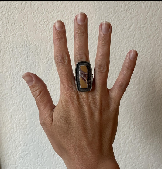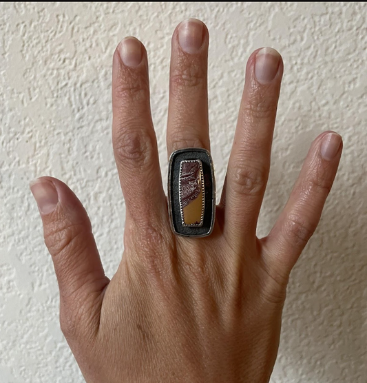 Sonoran Dendritic Rhyolite Rugged Shadowbox Ring (size 8)